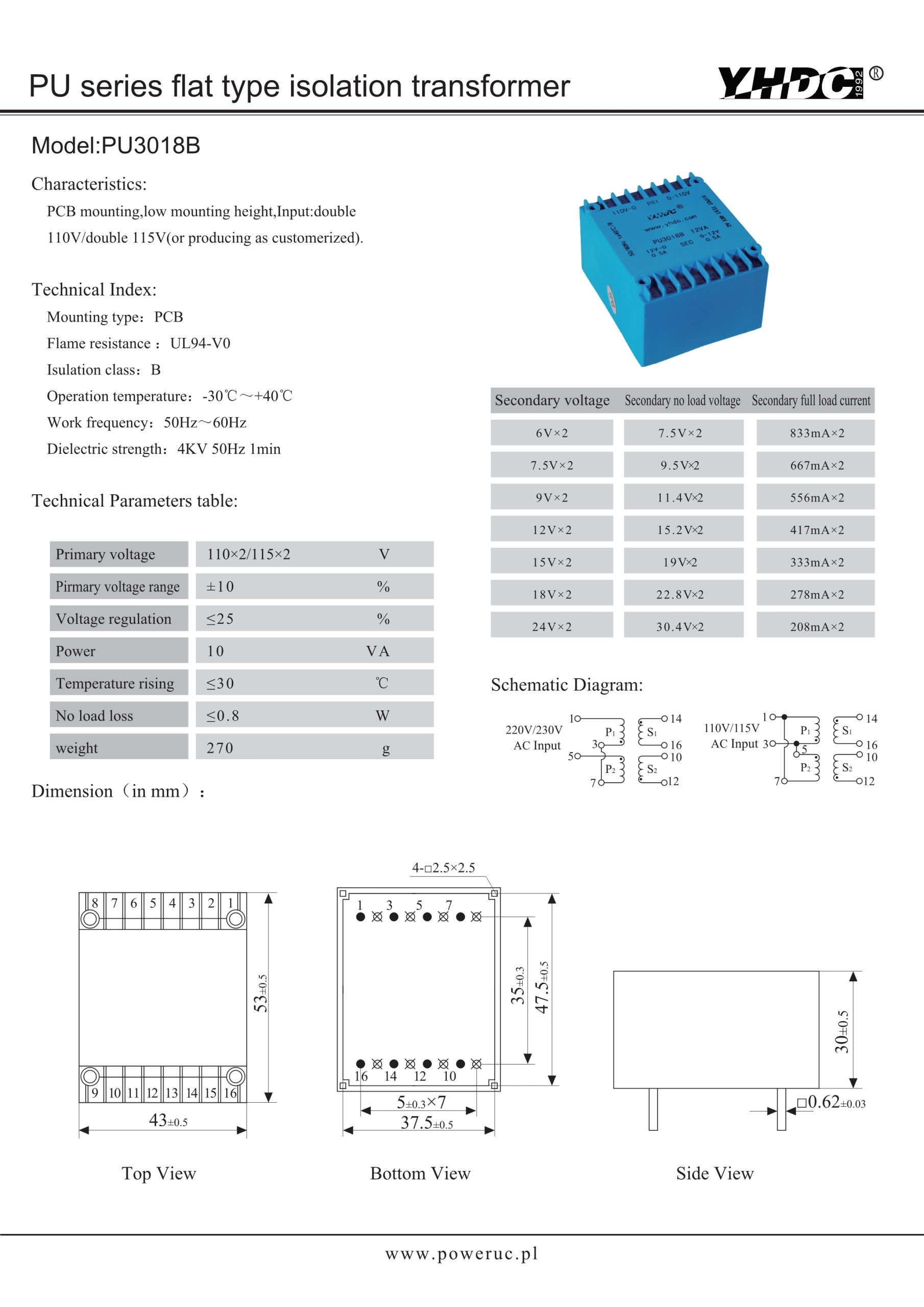 YHDC’s wide range of standard solutions provides the ideal supply for your circuit, from PCB transformers with absolute or limited short-circuit protection or those that are not short-circuit proof.