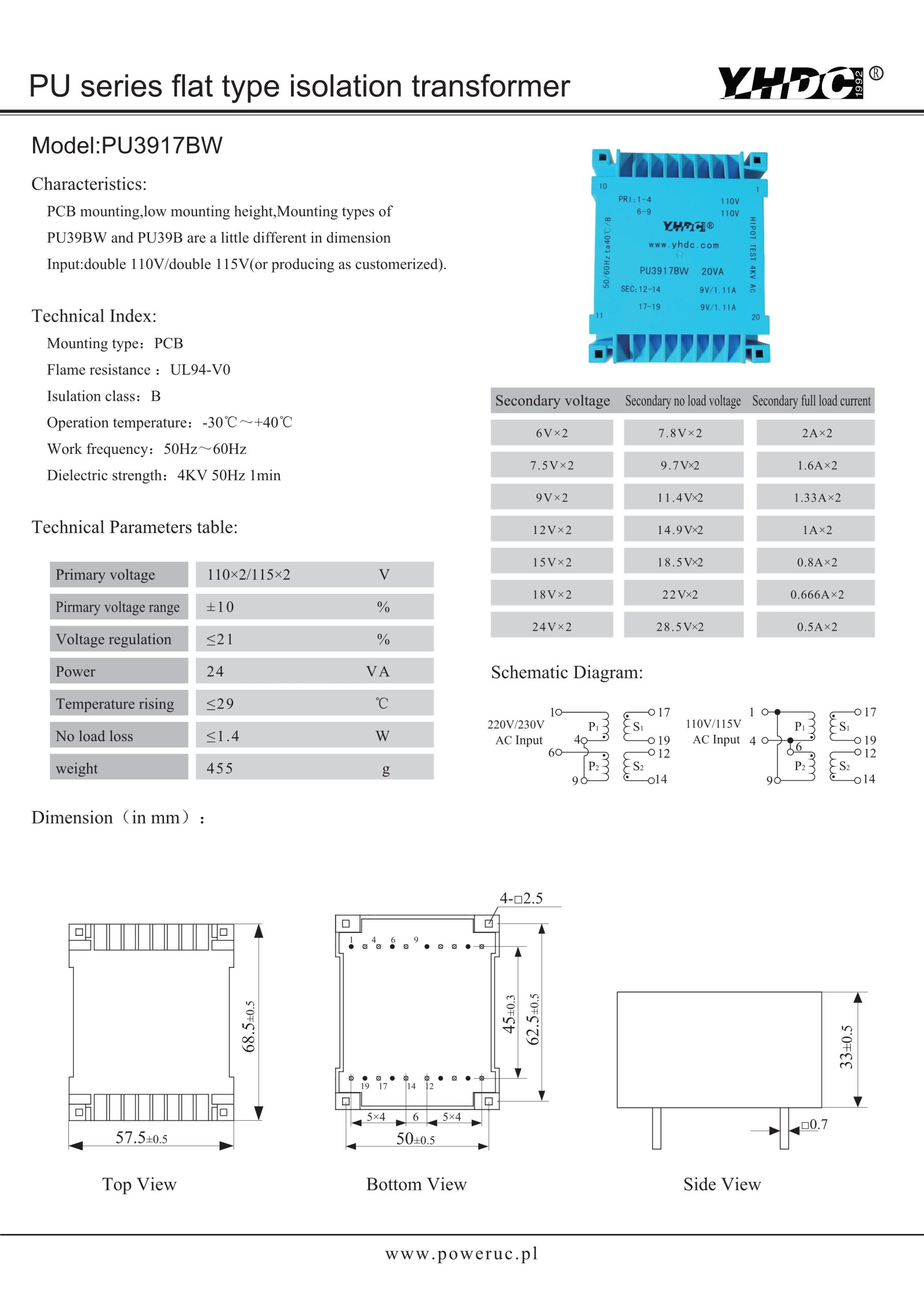 YHDC’s wide range of standard solutions provides the ideal supply for your circuit, from PCB transformers with absolute or limited short-circuit protection or those that are not short-circuit proof.